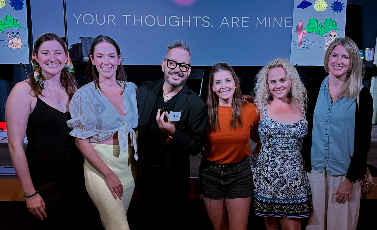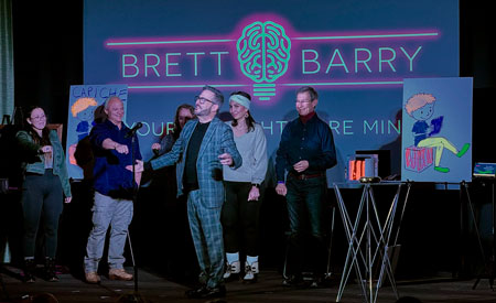 This is NOT hypnosis or a psychic show and Brett is not a medium (and will not speak to your dear departed). Rather, he is an intuitive entertainer looking to bring the audience together for a fun shared experience. But this won’t be your everyday magic show. As examples, he will open a fully locked & borrowed iPhone and somehow know the name of an audience member’s childhood pet.
