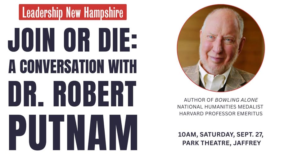 Join Leadership New Hampshire for a rare conversation with Dr. Robert Putnam, one of the most influential voices in American civic life.