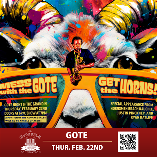 From the Blue Ridge Mountains of Virginia comes GOTE. Bringing the guitar, witty lyricism and sublime dance moves of Foster Burton together with Jay Gladden's immense bass groove, along side John McBroom's guitar and vocal escapades and Matt Leonard laying down the beat on drums. GOTE brings music that makes your body want to move and your soul feel good. It's GOTE night y'all!!! At the historic Grandin Theatre.