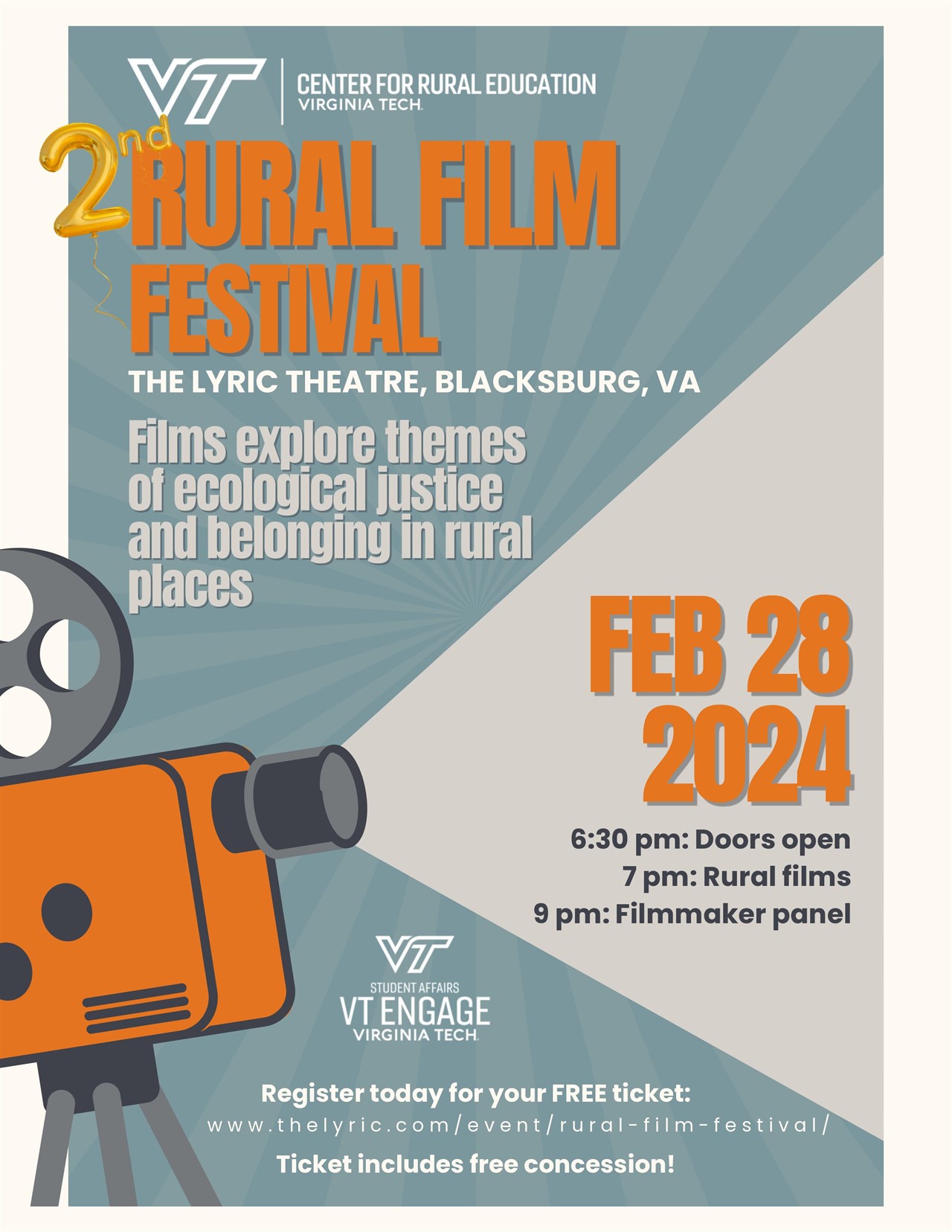 Join the Center for Rural Education at Virginia Tech for an evening of celebrating rural culture through film and music!
