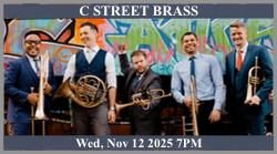 C Street Brass is equally as comfortable with Baroque as they are Broadway, this brass ensemble features five talented, classically trained musicians. Their concerts encompass a wide variety of genres, ranging from Frank Sinatra to Astor Piazzolla and Billy Joel to George Gershwin. Single Tickets $25.00. (If buying 4 Concerts or more save $5 per ticket with "Pick Your Own Package")