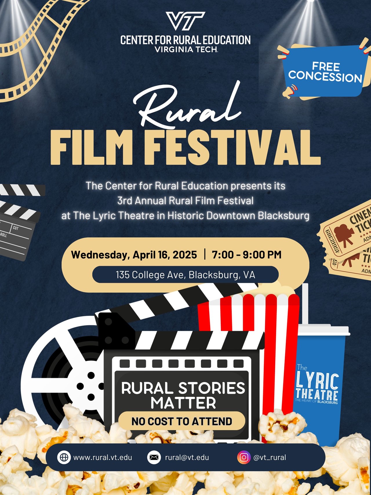 Join the Center for Rural Education at Virginia Tech for an evening of celebrating rural culture through film!
