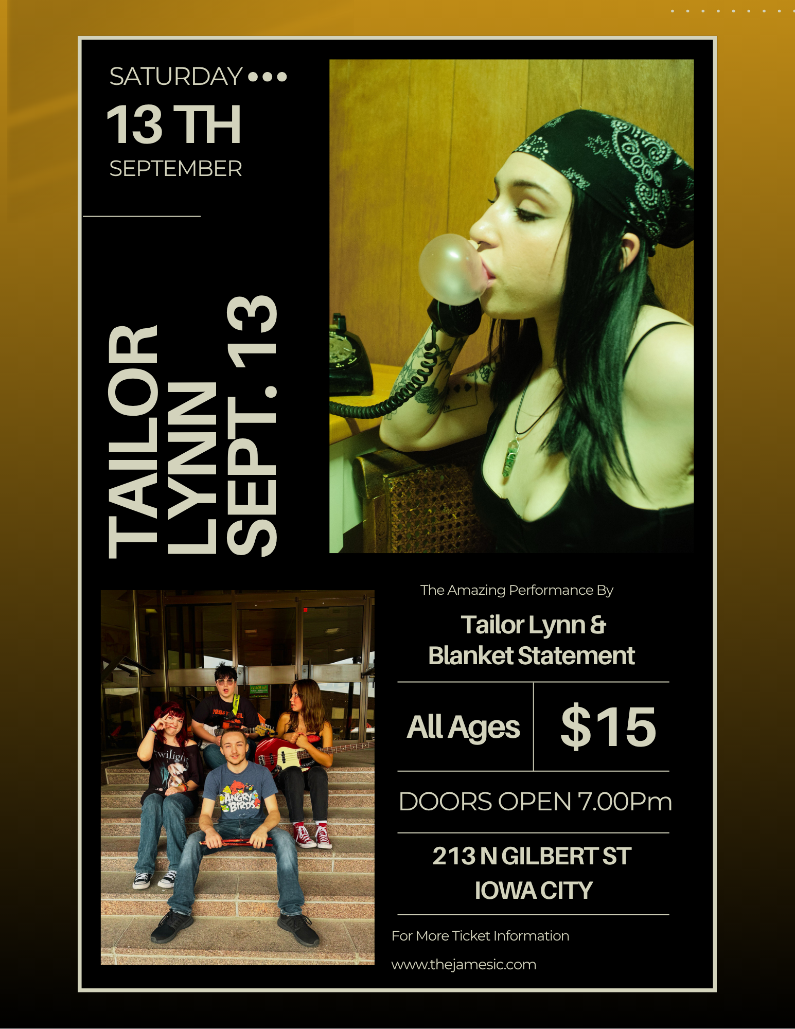 Kicking off the night is Blanket Statement, bringing high-energy nostalgia with their signature 90s-2000s punk rock covers. Expect plenty of throwback anthems and crowd-pleasing riffs to get you moving before Tailor Lynn takes over.
