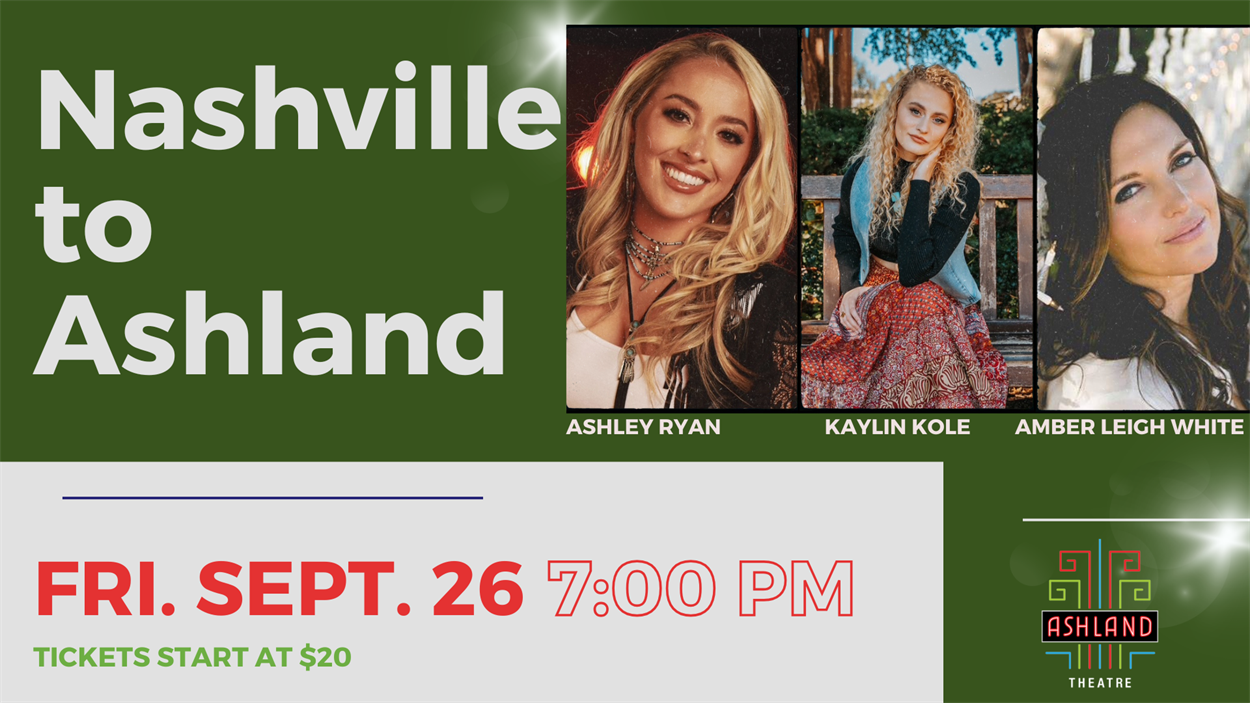 A night of singer-songwriters from Nashville take the Ashland Theatre stage for one night only! Ashley Ryan, Kaylin Kole, and Amber Leigh White!