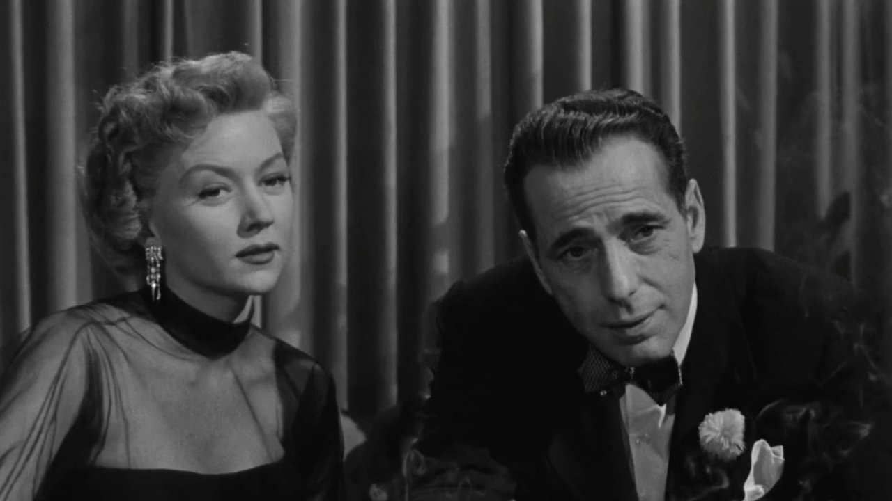 A violent screenwriter and a female neighbor fall in love after she clears him of murder, but she begins to have second thoughts.