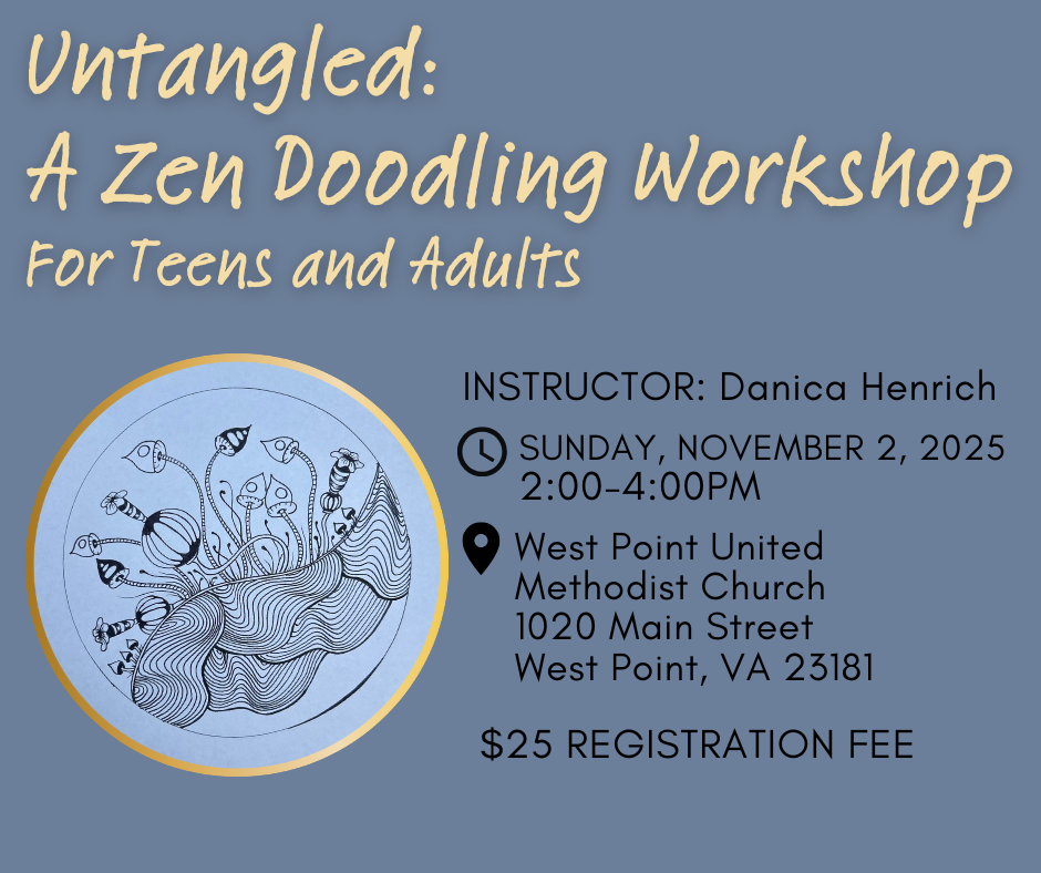 As the leaves turn and the air cools, it's the perfect time to slow down, cozy up, and reconnect with your creativity. Untangled is a peaceful, beginner-friendly workshop where we use the calming art of Zen doodling to unwind and center ourselves. We’ll explore fall-inspired themes, and you’ll leave feeling grounded, creative, and ready for whatever the season brings.