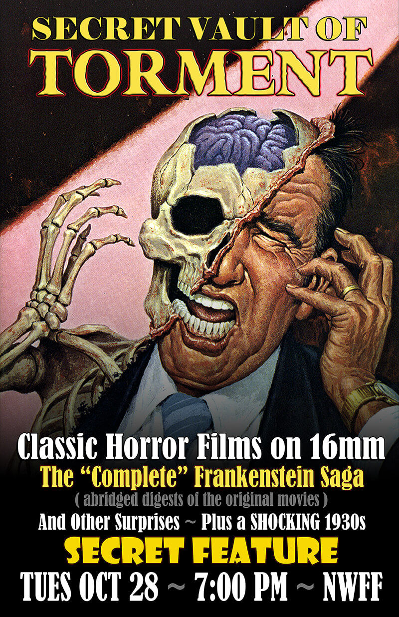 The Sprocket Society presents mad doctors, monsters, and dungeons galore in a secret seance of shivers, all on 16mm film!