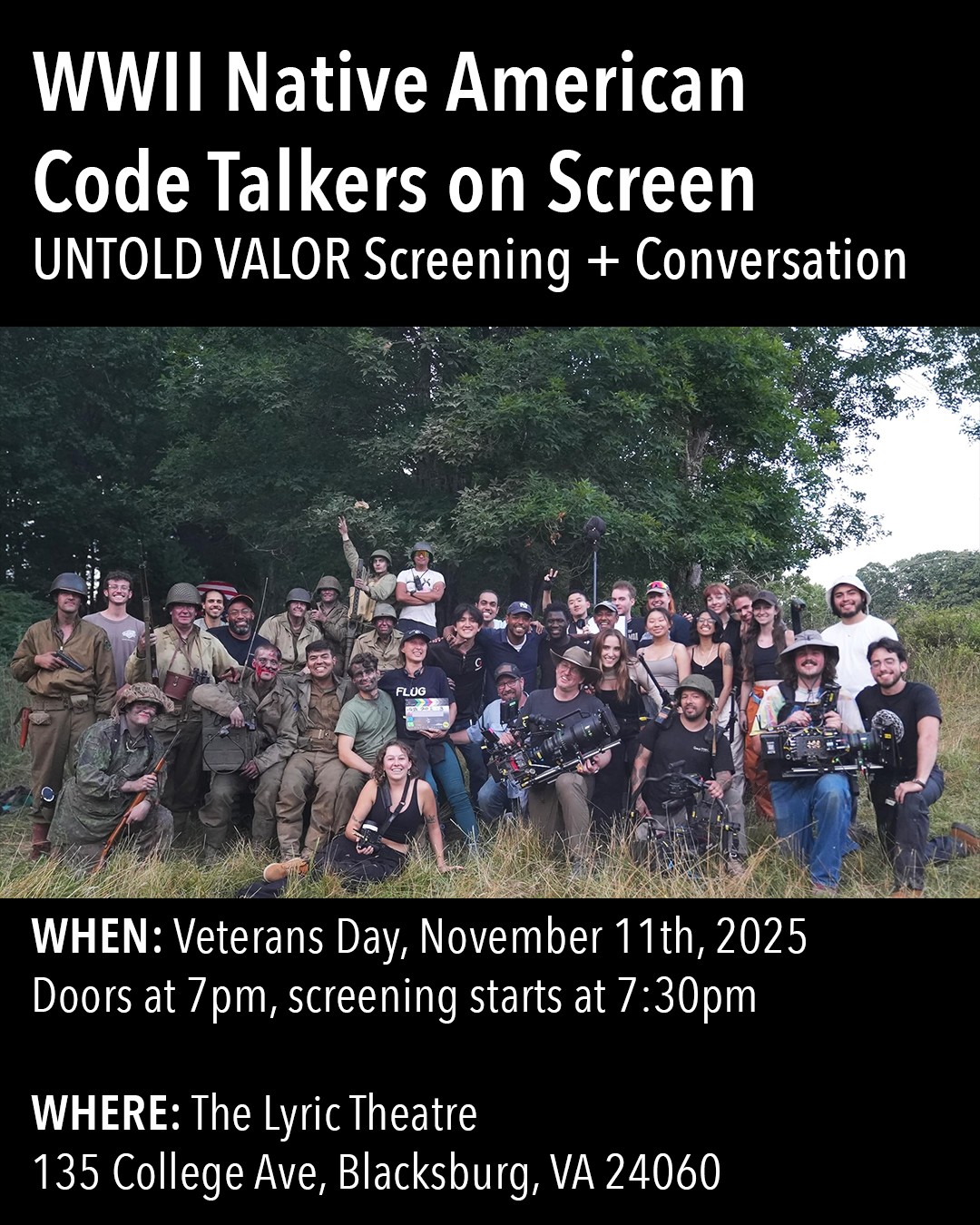 Join us for a special Veterans Day sneak preview screening of UNTOLD VALOR, the pilot episode for a new series filmed in Southwest Virginia. UNTOLD VALOR shares the stories of Native American code talkers in World War II, honors veterans, and sparks meaningful dialogue about representation, resilience, and history.