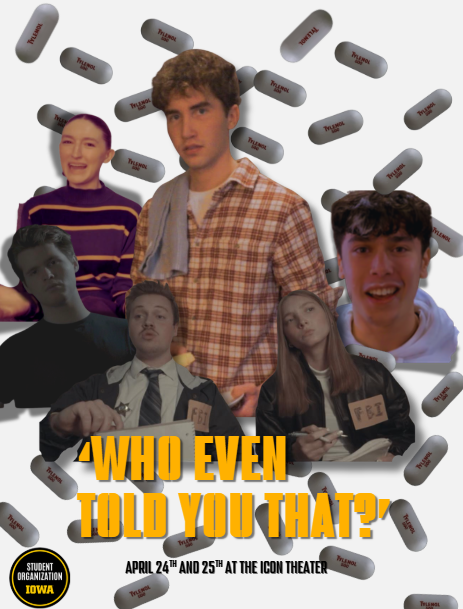The 'Who Even Told You That?' sketch comedy troupe is a student led organization at the University of Iowa. After spending a semester creating pre-recorded footage, the crew is now turning their sights to a live comedy show. Through an hour-long performance, the troupe will put on a variety show of live music and sketch comedy, all written, acted, performed, and produced by the club's 14 members.