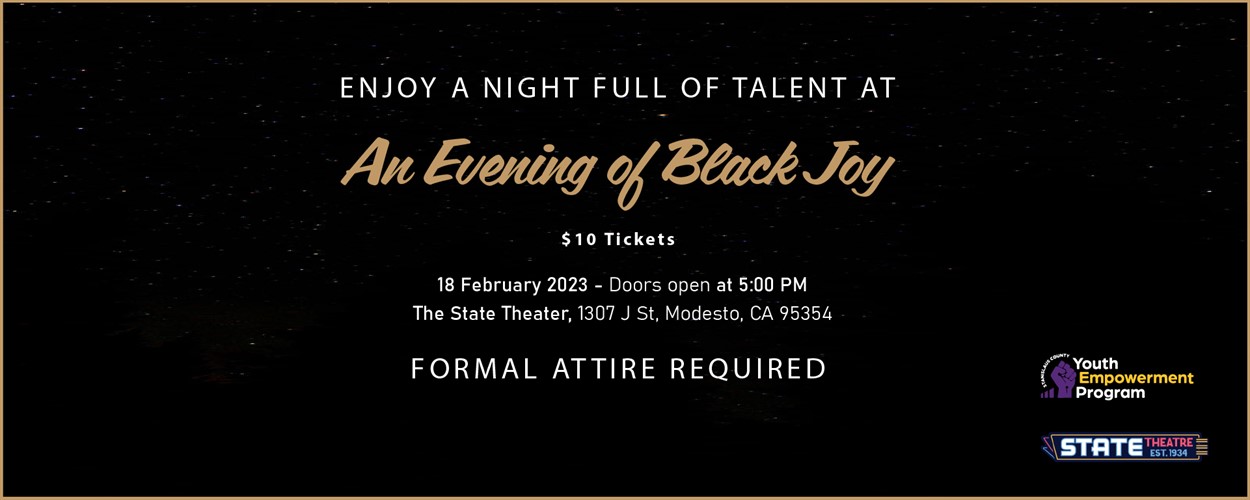 The Youth Empowerment Program presents its first talent show in partnership with The State Theater. We welcome you to enjoy a night full of talent at An Evening of Black Joy.