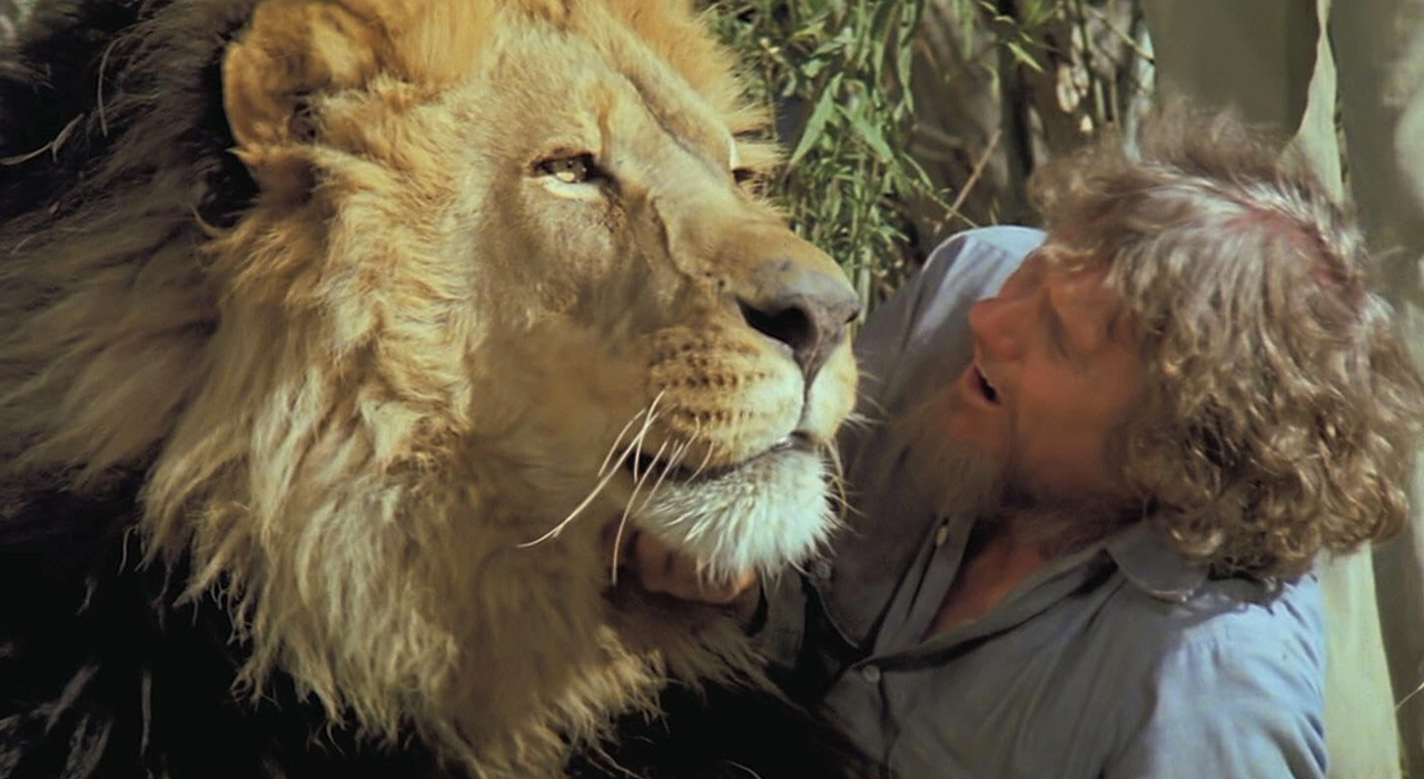 Doting father, and producer of THE EXORCIST, Noel Marshall has had it with how humanity treats endangered species and relocates a bunch of big cats to his home with wife Tippi Hedren and step-daughter Melanie Griffith. Chaos ensues.