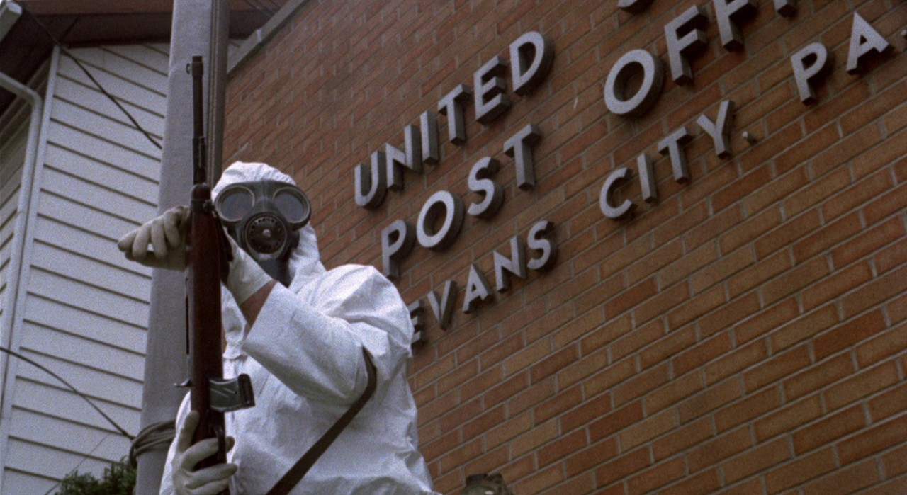 A small PA town is invaded by masked government forces after its citizens begin to exhibit murderous tendencies following the spread of a bioweapon from a downed military plane in Romero’s return to horror after NIGHT OF THE LIVING DEAD.